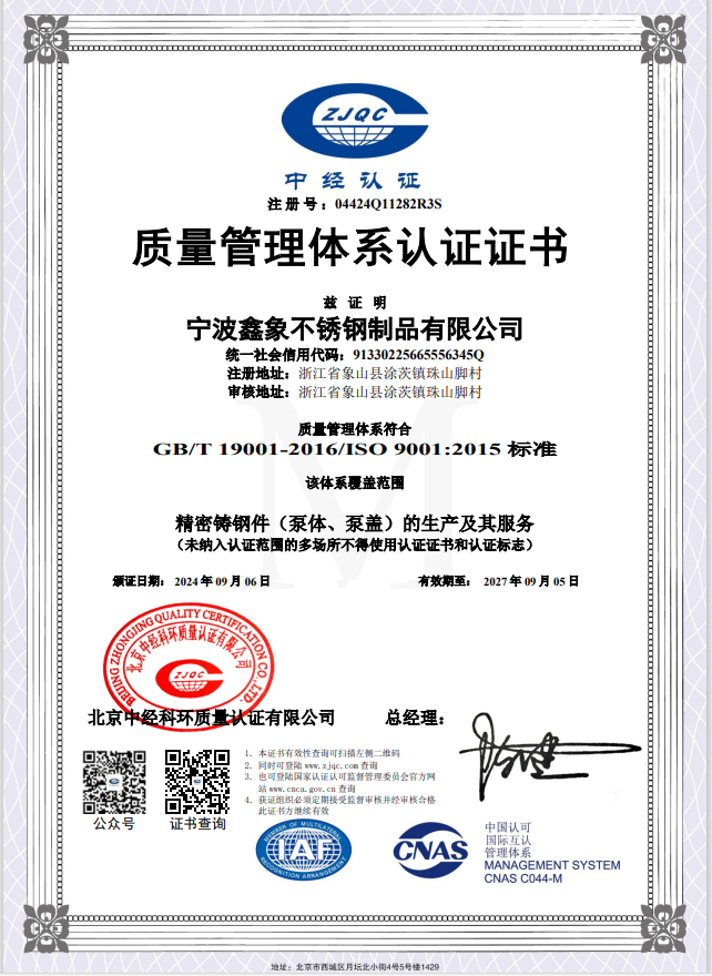 質(zhì)量管理體系證書(shū)